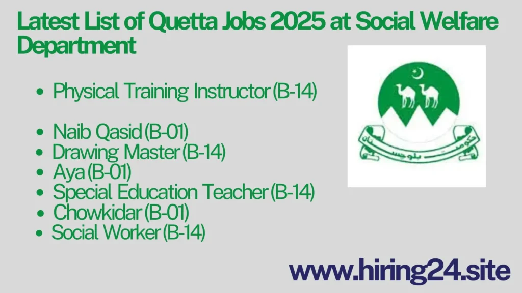 Latest List of Quetta Jobs 2025 at Social Welfare Department