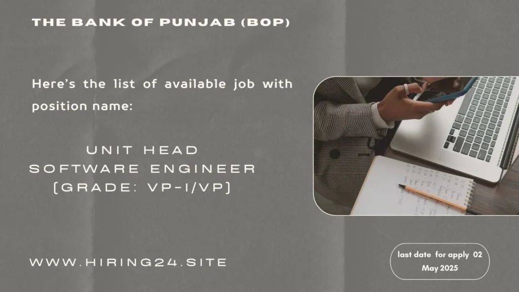You can apply for the job by visiting the Bank of Punjab’s official website at www.bop.com.pk. Go to the “Careers” section, find the job and fill out the application form online.